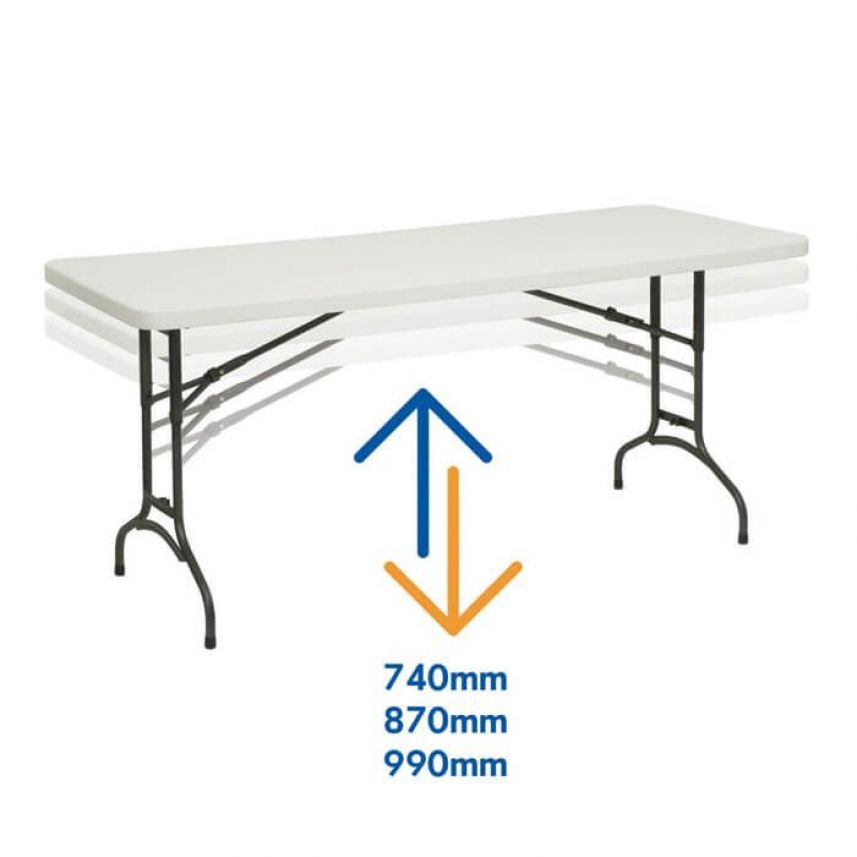 The plastic folding table is both lightweight and strong and are suitable for back of house settings or front of house with table cloths. Easy to transport and store, these tables feature a plastic, hygienic top.